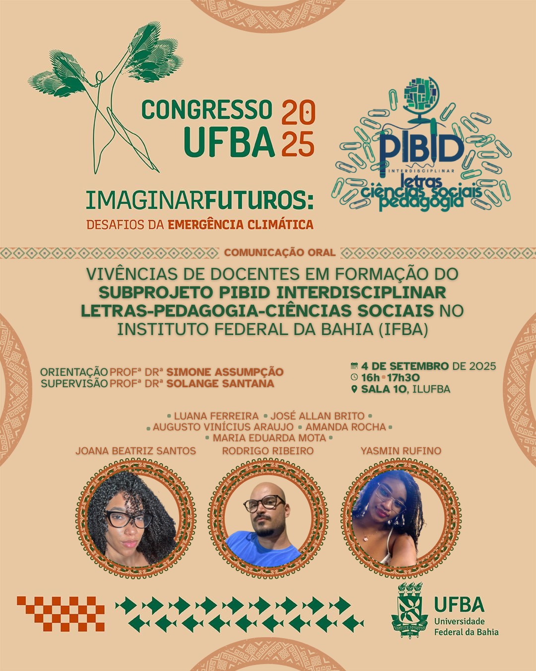 Registro de apresentações do subprojeto Interdisciplinar de Letras, Pedagogia e Ciências Sociais no Congresso UFBA 2025